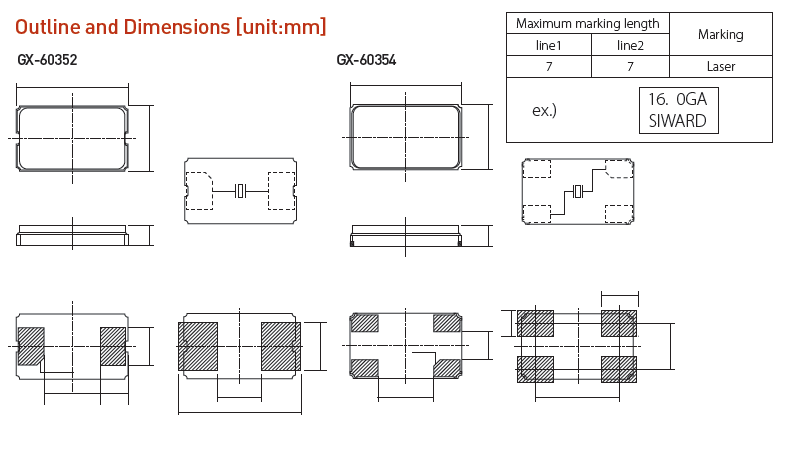 希華晶振,貼片晶振,GX-60354晶振,石英貼片諧振器,貼片石英晶體,體積小,焊接可采用自動(dòng)貼片系統(tǒng),產(chǎn)品本身小型,表面貼片晶振,特別適用于有小型化要求的電子數(shù)碼產(chǎn)品市場(chǎng)領(lǐng)域,因產(chǎn)品小型,薄型優(yōu)勢(shì),耐環(huán)境特性,包括耐高溫,耐沖擊性等,在移動(dòng)通信領(lǐng)域得到了廣泛的應(yīng)用,晶振產(chǎn)品本身可發(fā)揮優(yōu)良的電氣特性,滿足無(wú)鉛焊接的高溫回流溫度曲線要求.